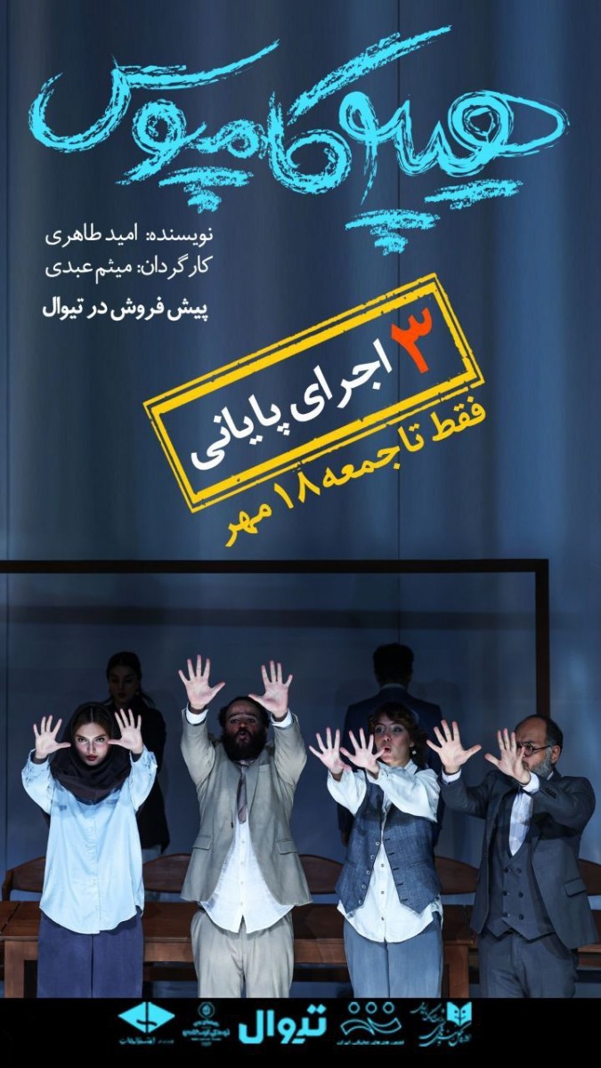طی شب‌های آینده نمایش هیپوکامپوس آخرین اجراهایش را بر صحنه می‌برد. تا تمام نشده سری به تماشاخانه نوفل بزنید و این کار را ببینید تا پشیمان از دنیا نروید زبانم لال