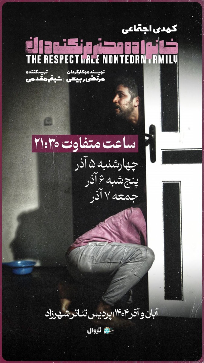 به اطلاع مخاطبین گرامی میرسانیم نمایش خانواده محترم نکته دان روز چهارشنبه ۵ آذر ، پنجشنبه ۶ آذر و جمعه ۷ آذر ماه در ساعت متفاوت، ساعت ۲۱:۳۰ به روی صحنه میرود.