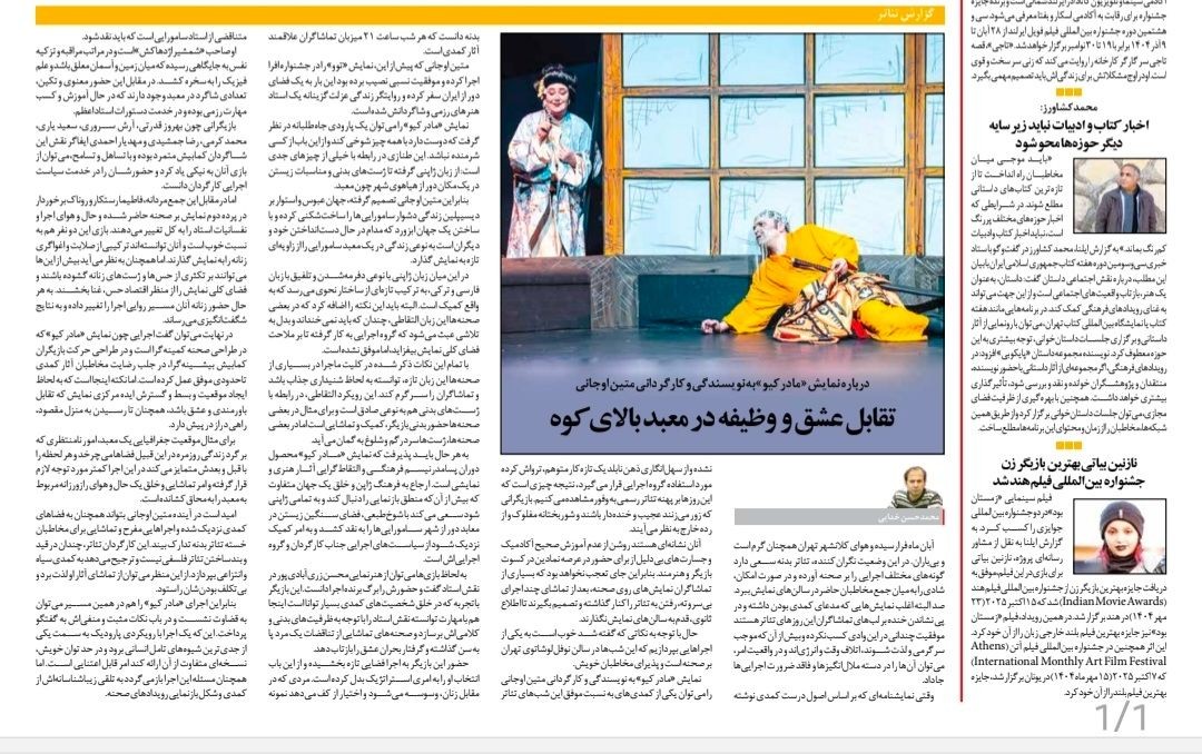 نوشته ای برای نمایش مادرکیو از صفحه ( تئاتر دیلی )...