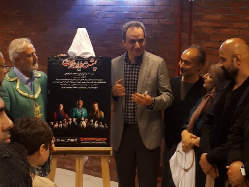درادامه نیز پوستر این نمایش که توسط آریا درفش رزم طراحی شده بود توسط شهرام کرمی و جلیل فرجاد ، نماینده بازیگران گروه نمایشی رونمایی شد.