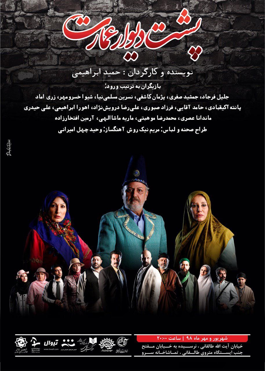 نمایش «پشت دیوار عمارت» از دیروز یکشنبه اجرای خود را درتماشاخانه سرو انجمن تئاترانقلاب و دفاع مقدس آغاز نمود و تا ۳۰ شب از ساعت ۲۰ ادامه خواهد یافت.