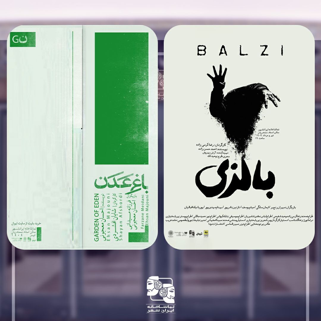 دو نمایش «باغ عدن» به کارگردانی شایان افشردی و «بالزی» به کارگردانی رضا کرمیزاده از ۴ تیرماه در سالن استاد سمندریان به صحنه خواهد رفت.