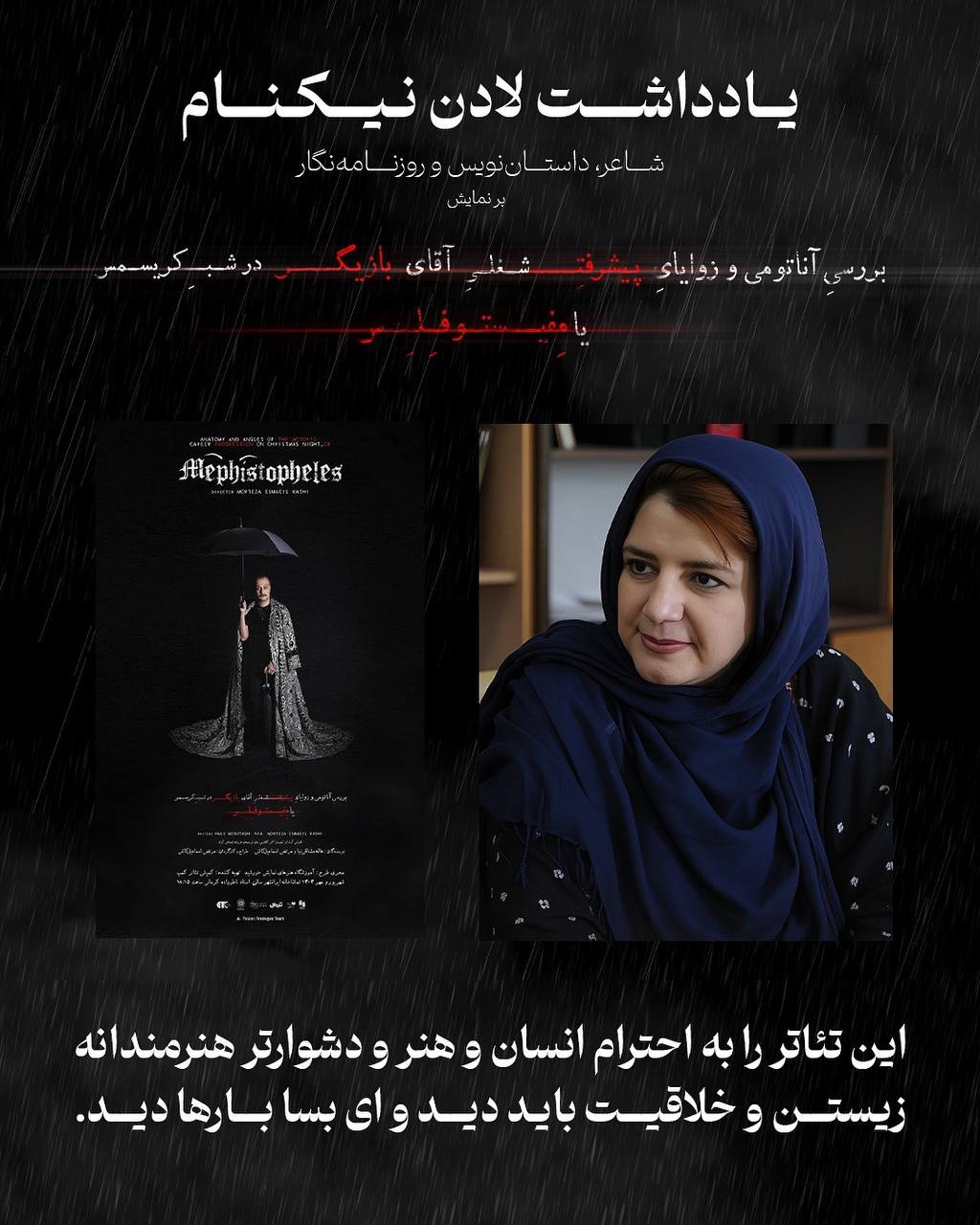 لادن نیکنام: این تئاتر را به احترام انسان و هنر و دشوارتر هنرمندانه زیستن و خلاقیت باید دید و ای بسا بارها دید.