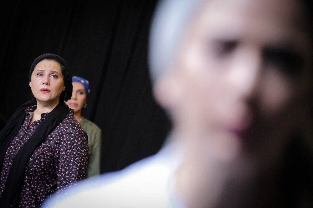 حامد قریب: تاریکی همه جا را فرا گرفته و راه گریزی نیست. پردیس تئاتر لبخند، خنده را فراموش کرده و فضای غمباری گرفته است. با فرمان کارگردان، نور کمرنگی از میان دریچهها روی صحنه میافتد و با آمدن نور، جهان نمایش جان میگیرد تا ما شاهد روایتی تراژیک از سه زن باشیم. شاهدانی که گویی از اعماق تاریخ آمدهاند تا گذشته را به حال پیوند داده و تراژدی بیپایان خود روایت کنند.