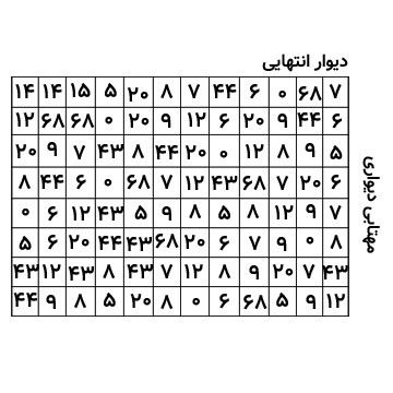از پلهها برو پایین و وارد حیاط خلوت دانشکده مکانیک بشو این طرح رو روی سقف پیدا کن و ترتیب اعداد رو حدس بزن. اینکه کدوم اعداد رو باید پیدا کنی از روی سقف مشخصه به جایی که خالی نیست توجه کن. ترتیب اعداد از نزدیک بودن به مهتابی شروع میشه.