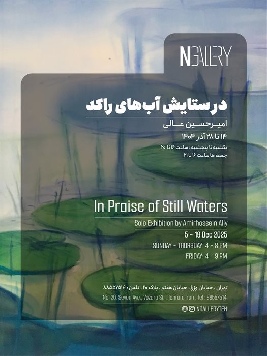 سکوت و درخشندگی مردابها در نقاشیهای امیرحسین عالی مجالی است برای نگریستن به زیستگاهی با ویژگیهای متضاد. او این آرامش و زیباییِ سحرانگیز را با کاربست طیفهای رنگی متنوع و خالص نمایان ساخته بیآنکه وفادار به پدیدهای واقعنمایانه باشد. نور روز، درخشش رنگهای مرداب را به رویایی دست نیافتی مبدل ساخته و آنگاه که شب فرا رسیده؛ ابهامی دلهرهآور بر مرداب سایه افکنده است. سایههای به جا مانده از نیلوفرهای مرداب توجه مشاهدهگر را از سطح مرداب به عمقی ناپیدا و ناشناخته جلب میکند. گویی با هر تابش خورشید و ماه این پدیدهی اسرارآمیز به گونهای دیگر جلوهگر شده و خصلت راکد و بیتموج مرداب به رفتاری نرم و سیال دست پیدا کرده است. با تصور جریان پر جنب و جوش اعماق مرداب؛ تصویر روییِ آن حامل نظمی است تکرارشونده از گونههای گیاهی بیآنکه تلاطم حاصل از جنبدگی در ژرفها رویتپذیر گردد. با اینحال نقاش در عینیت بخشیدن به تصویر مرداب بیش از آنکه بر ماهیتی آرام و غیر روان تاکید کند، تجسمی از روشناییِ حیاتبخش را در پرتوی روشی رازآمیز نزد این پدیدهی زیستی به نمایش درآورده است. این سیر بصری شاید بازگویی تجربه و تمنایی واقعی است از زیست انسانی در جهان بیرون با تمامیِ خموشیها و تنشها در پناه زبانی نمادین.