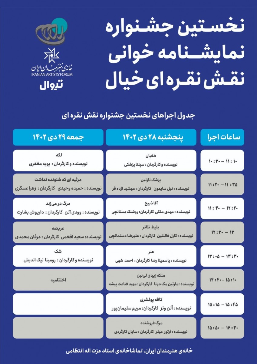 نمایشنامهخوانیهای جمعه ۲۹ دی: