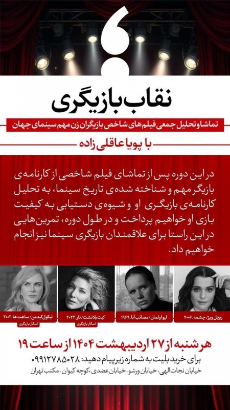 نقاب بازیگری با پویا عاقلی زاده تماشا و تحلیل جمعی فیلمهای شاخص بازیگران زن مهم تاریخ سینمای جهان در مکتب تهران