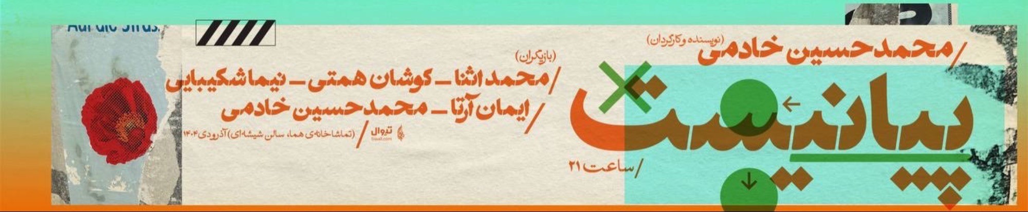 توجه مهم: نمایش راس ساعت آغاز می‌شود و درب‌های سالن بسته و پس از آن ورود به سالن امکان‌پذیر نیست.