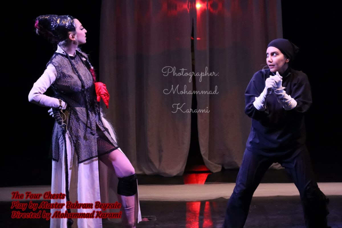 نمایشنامه چهار صندوق در سال ۱۳۴۶ در ایران، توسط استاد بهرام بیضایی نوشته شد، و در پاییز سال ۱۴۰۴ برای نخستین بار با کسب اجازه رسمی از ایشان قرار شد ساخت این اثر اجرای عموم خود را به کارگردانی محمد کرمی در ایران به روی صحنه ببرد. استاد بیضایی طی ارسال نامهای رسمی توسط آقای شاهین گرگانی حق کارگردانی و اجرای صحنهای عموم این اثر را بنام محمد کرمی صادر و ارسال کردند.