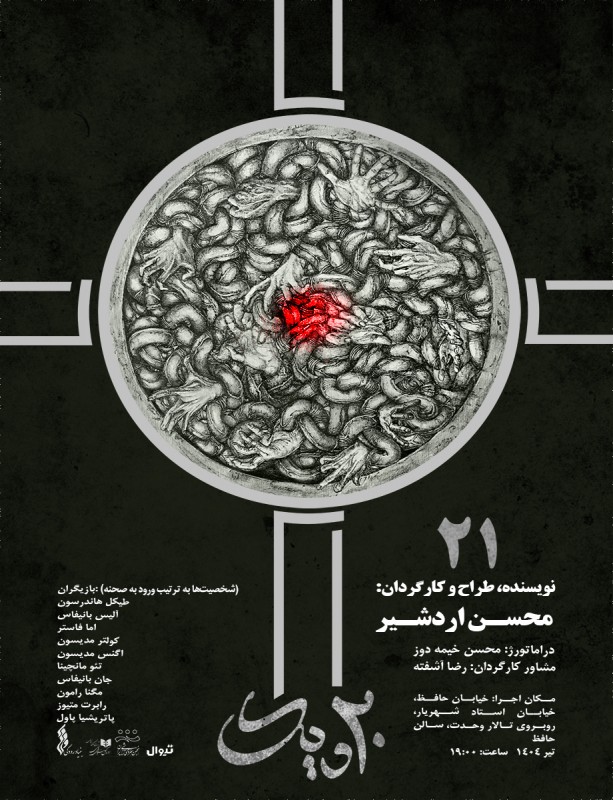 ›› از پوستر نمایش «۲۱» با طراحی میترا قاسمی رونمایی شد
