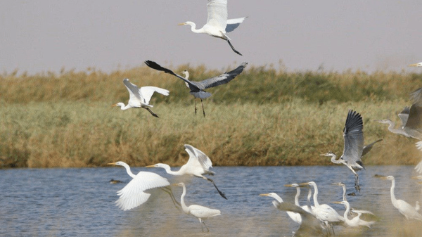 تالاب مره استان قم با حضور بیش از ۲۰۰ گونه پرنده، نماد پویایی و امید میان خشکی‌های گسترده است.