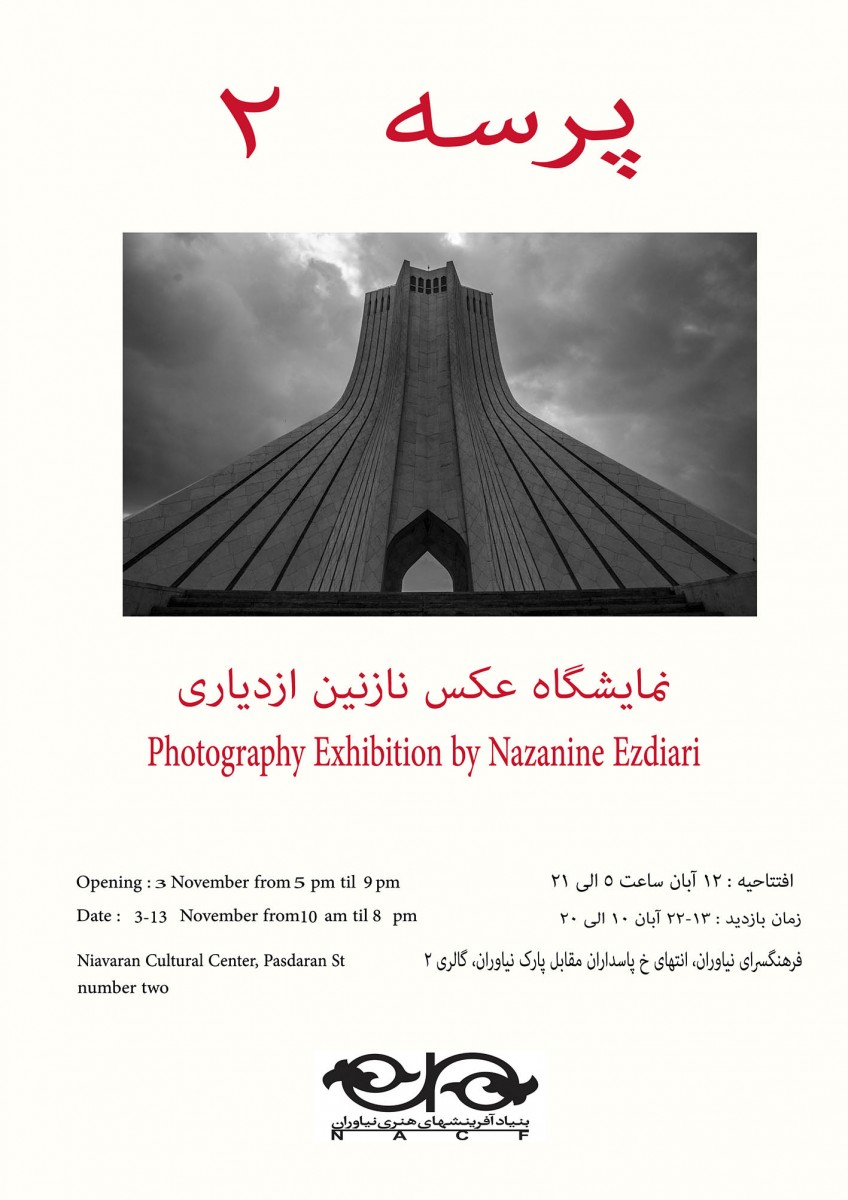 به گزارش روابط عمومی بنیاد آفرینشهای هنری نیاوران، نازنین ازدیاری در دومین نمایشگاه انفرادی اش سی اثر را در قالب عکسهای سیاه و سفید از مناظر طبیعی ایران به تصویر کشیده است .