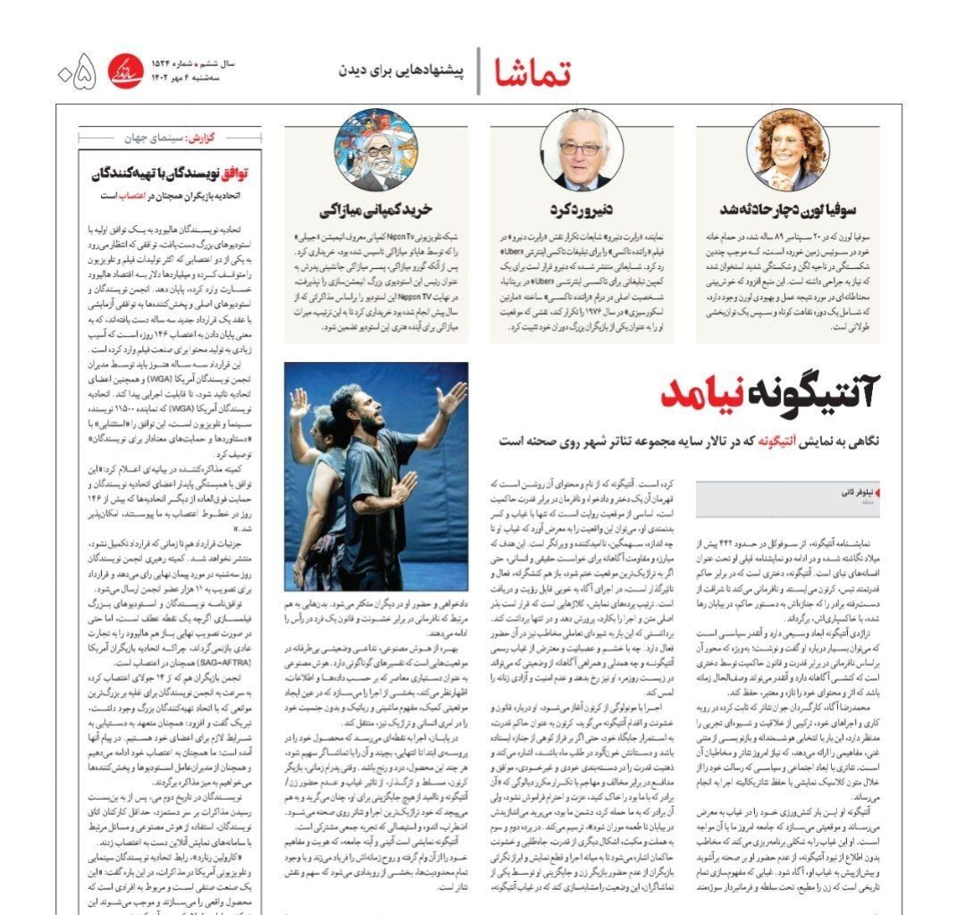 منتشر در روزنامه سازندگی سه شنبه 4 مهر 1402