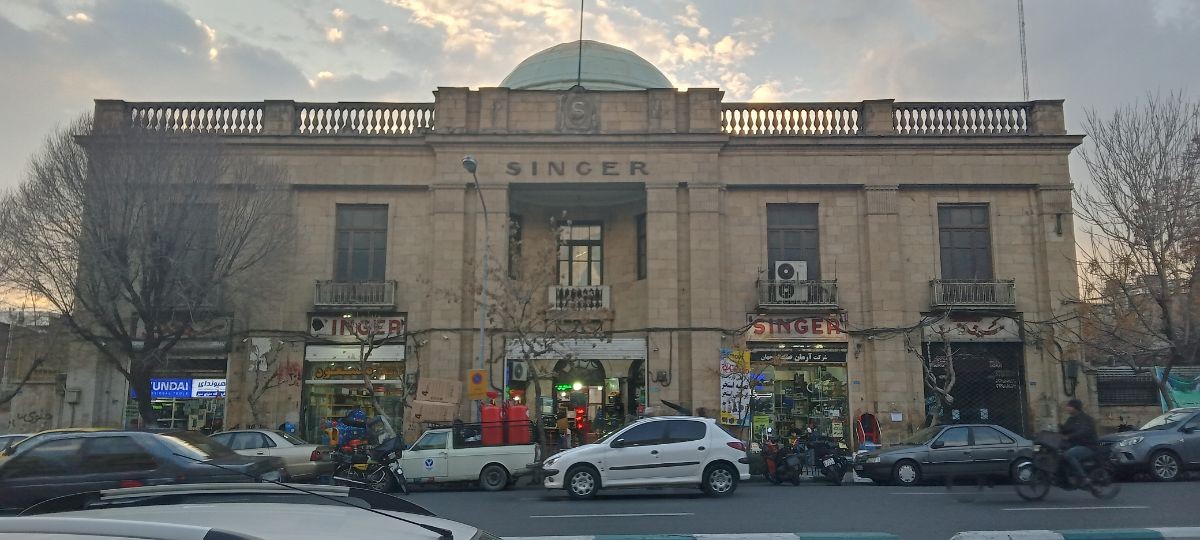 سینگر که تولیدکنندهی چرخ و ادوات خیاطی بود، در طی دههی ۲۰ به بازار ایران وارد شد و نمایندگی عرضهی محصولات خودش در خیابون سعدی کنونی رو احداث کرد. سینگر از نخستین نمایندگیهای برندهای جهانی در ایران بود و میگفتن اولین ساختمون تهرانه که از شیشههای قدی در اون استفاده شده.